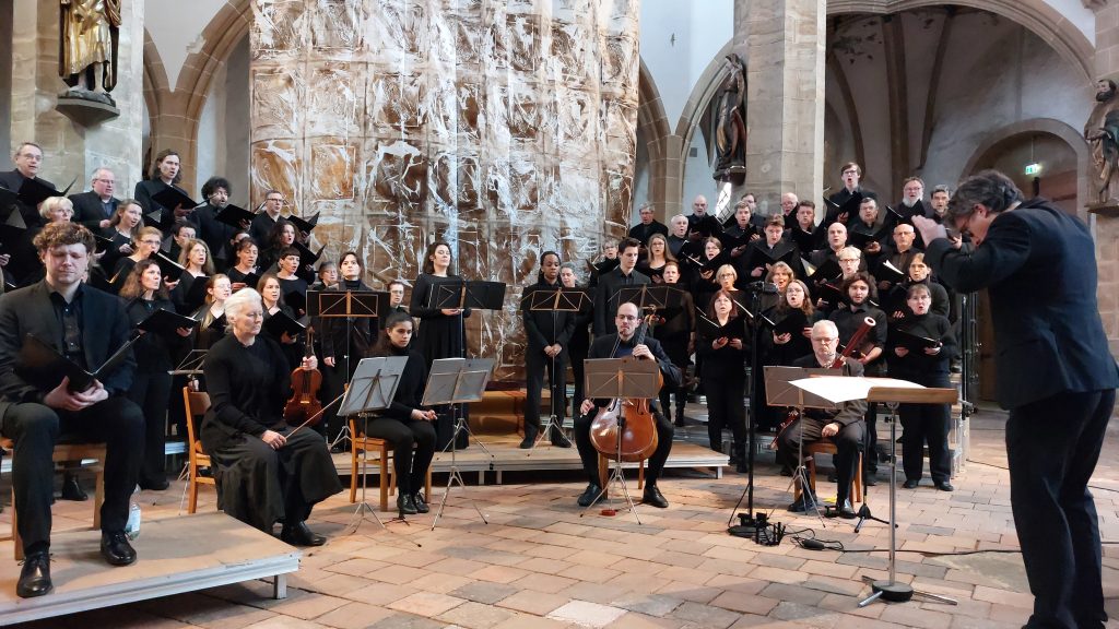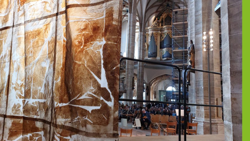 Es sind vielleicht die vielen Verbindungen zwischen Tradition und Gegenwart. Sowohl die Passionsmusiken als auch die Verhüllungen von Altären haben eine jahrhundertealte Tradition. Dazu kommt, dass wir als Lutheraner von Passionsmusiken sehr konkrete Vorstellungen haben, die vor allem durch Heinrich Schütz und dann natürlich Johann Sebastian Bach geprägt sind. Nun habe ich ein Projekt, das einerseits die Erwartungshaltungen bedient, andererseits sie aushebelt. Pärts Musik ist so weit weg von allem, was wir normalerweise mit Passionsvertonungen verbinden. Sie ist unemotional, gleichförmig und fließt nahezu meditativ dahin. Dazu kommt das faszinierende Fastentuch von Michael Morgner, acht mal fünf Meter groß. Es korrespondiert mit dem Raum des Freiberger Domes, als wäre es für diesen geschaffen. Und es tritt in einen Dialog mit der Musik, mit der Gleichförmigkeit, die zum genauen Beobachten einlädt. Die Kooperation mit der Kulturhauptstadt Chemnitz 2025 bringt uns zudem ein Publikum, das nicht aus liturgischem Interesse in die Passion kommt, sondern einzig das Kunsterlebnis sucht. Dieses wird dennoch nicht unberührt vom Heiligen Geist nach Hause gehen. Kurzum könnte man sagen: Wo wir Dinge in Zusammenhang bringen, die aus dem Alltag heraus betrachtet nicht zusammengehören, wo wir Traditionen aufnehmen, aber neu interpretieren, dort entsteht Innovatives.